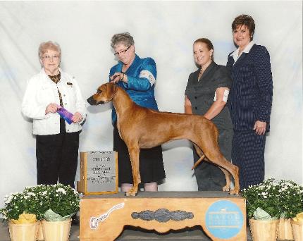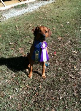 at the Trinity Valley Rhodesian Ridgeback Club Lure Coursing at her first trial. Not only did she earn her JC title with beautiful runs.....but she wasn't finished Best of Breed and a 4 point major.